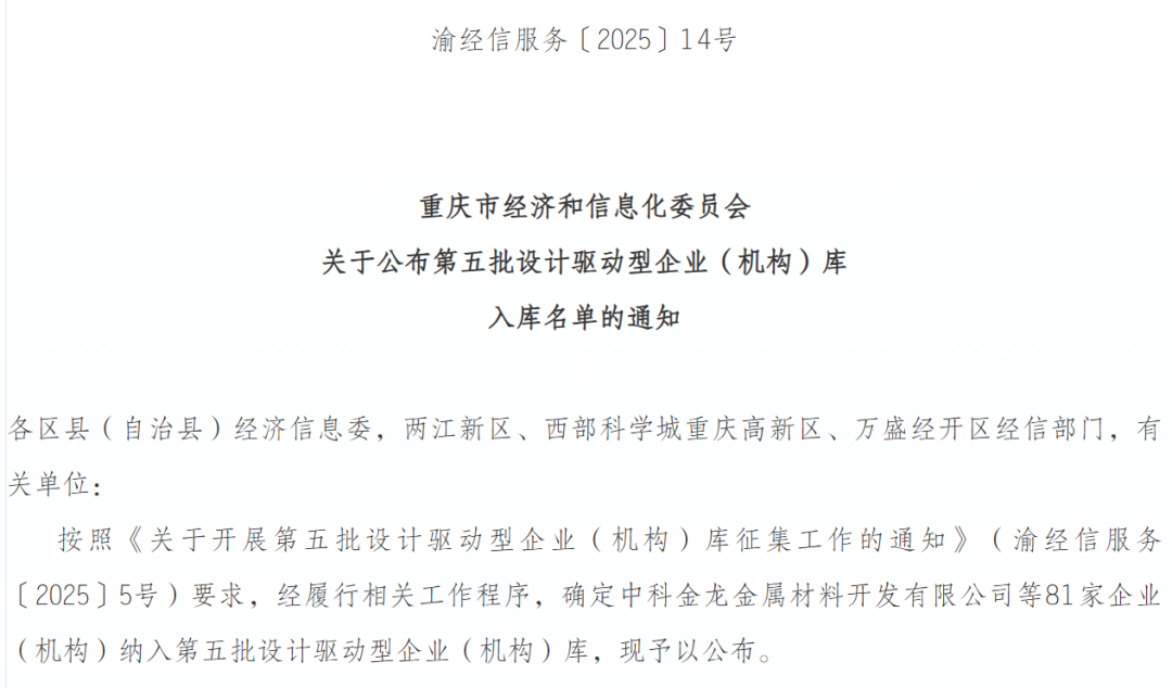 喜报|川仪股份所属单位入选重庆市设计驱动型企业