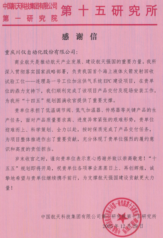 在“十五五”开局之年,川仪股份上下锚定高质量发展目标,聚焦核心技术突破与市场开拓。近期,公司接连实现重大订单获取与重点项目圆满交付,以扎实业绩迎来新年“开门红”。