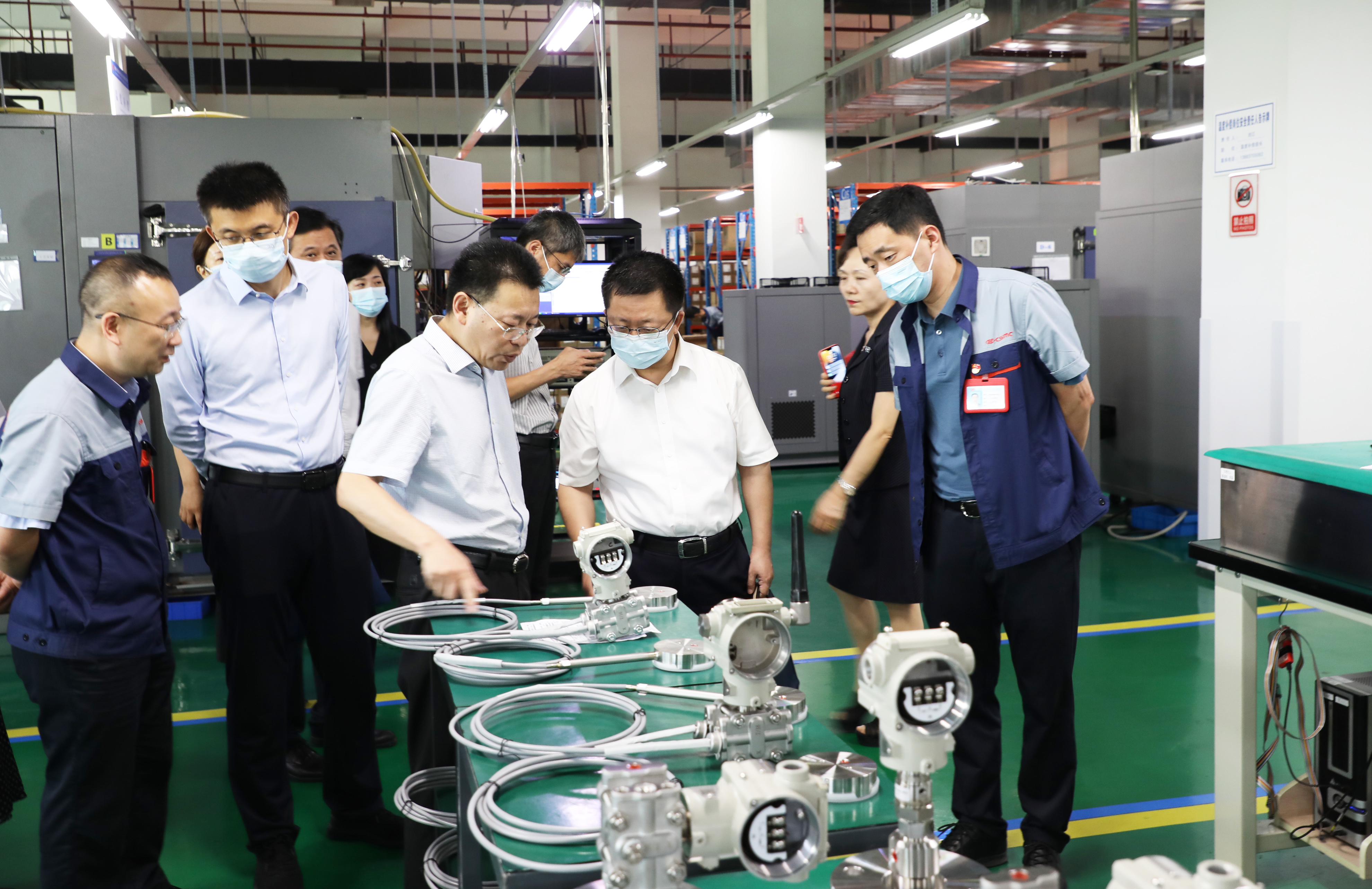 调研组一行深入四联测控生产车间了解企业生产情况,并围绕企业生产经营、产品研发、技术创新等方面与现场人员进行沟通交流。